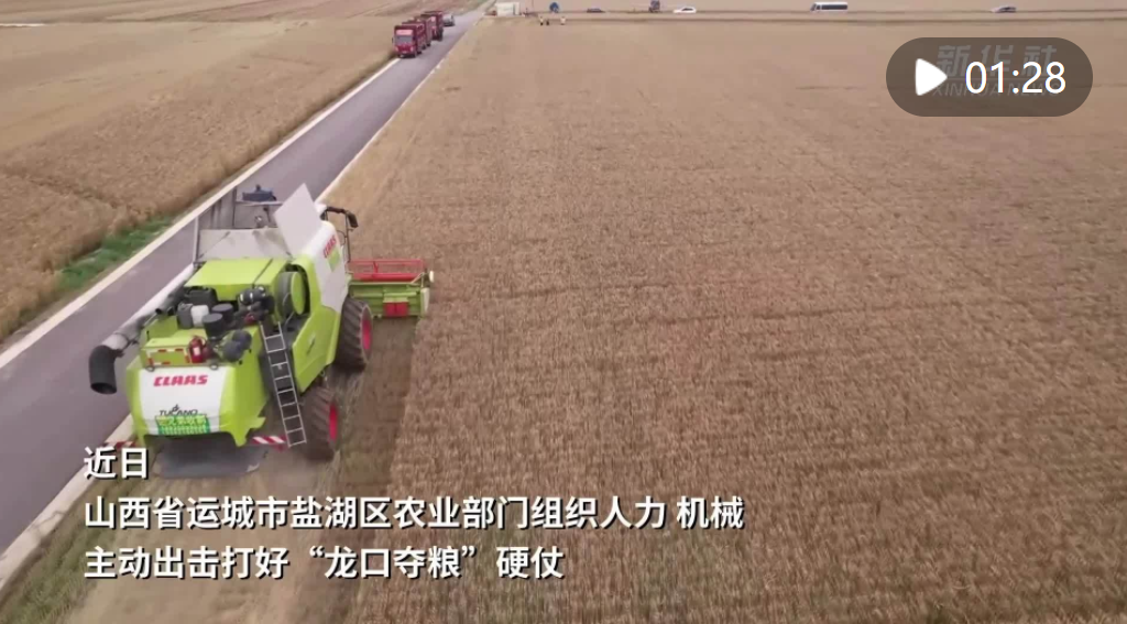 近日,山西省运城市盐湖区农业部门组织人力、机械,抢晴天,抓进度,争分夺秒进行抢收作业,主动出击打好“龙口夺粮”硬仗。(新华社记者原勋、魏飚)