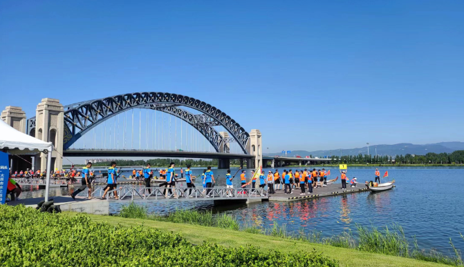 端午佳节,2023太原汾河龙舟公开赛在太原水上运动中心火热开桨,来自北京、山东、福建、云南、宁夏等地的24支龙舟队相约汾河,以龙舟竞渡欢庆端午佳节。(新华社记者马晓媛)