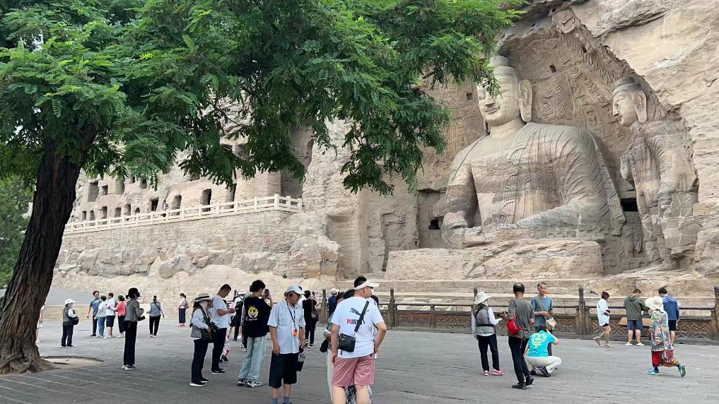 酷暑炎炎,在山西省大同市云冈石窟景区内,游客们既能步入凉爽的洞窟欣赏石窟造像,又能在绿树掩映的景区中驻足歇脚。凭借盛夏最高平均温度26摄氏度的“清凉”优势,大同成为周边地区的避暑热门“打卡地”。为满足旅客不断提升的个性化、多样化需求,西南、西北、东北等热门避暑目的地正积极探索经验做法。(新华社记者解园)