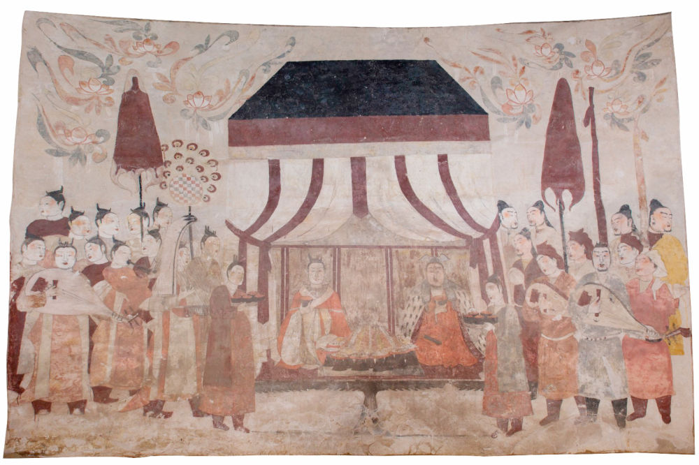 站在徐显秀墓封土堆旁,戴上VR眼镜,“任意门”开启,4K画质的墓室内壁画清晰可见,1400余年前北齐勋贵的显赫威仪与绮丽奢华的生活场面如在眼前……