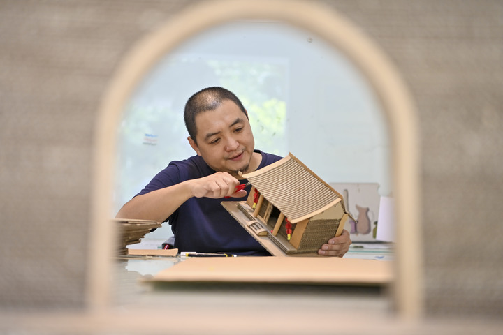 今年39岁的王帅栋出生于纸艺世家,从鲁迅美术学院毕业后,他结合所学装饰艺术设计专业知识和家族传统技艺,开始探索瓦楞纸创意作品。