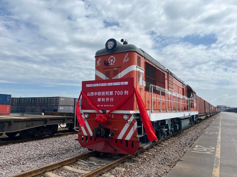 5日10时,随着满载陶瓷餐具、汽车轮胎、管道配件、玻璃制品等货物的X9235次列车从位于山西省中部的中鼎物流园开出,山西省中欧班列开行数量累计达到700列。