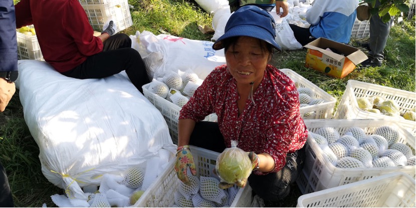 深秋时节,走进山西省汾西县玉露香梨种植基地,层层叠叠的梯田梨园里,沉甸甸的梨子压满枝头。趁着晴好天气,当地果农们穿梭在田间地头抓紧采收,有的摘、有的装、有的运,一派繁忙景象。(新华社记者王飞航)