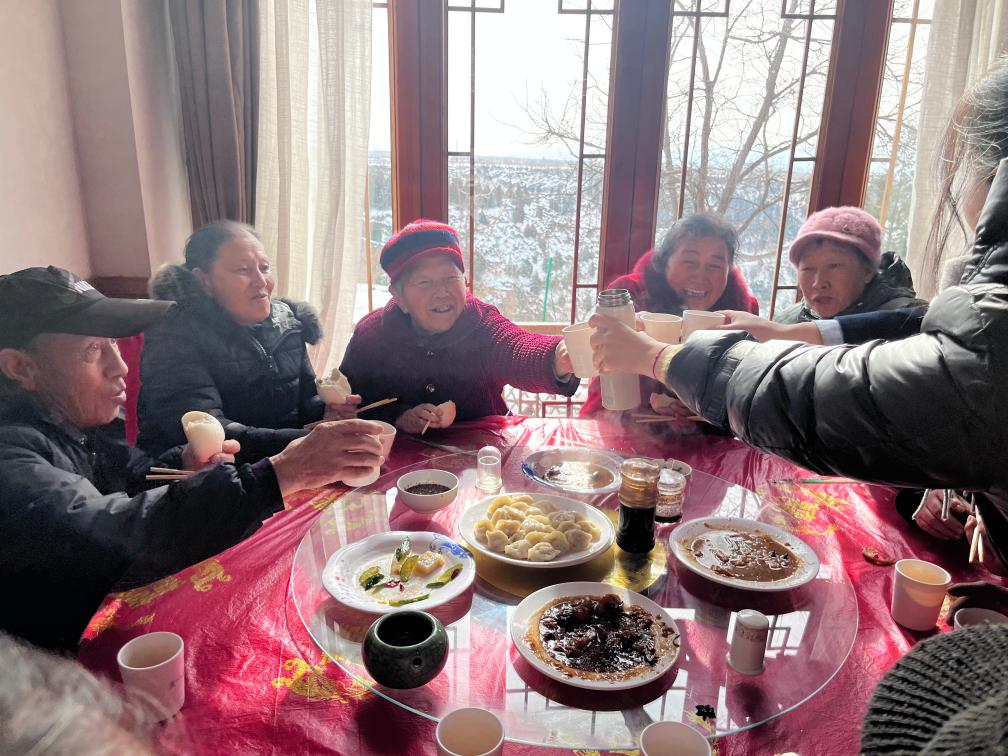 两个多小时过去了,村民们拿着刚分到的分红,高兴地来到一楼餐厅。食堂师傅已经准备好了烩菜、过油肉、凉拌猪头肉等菜肴,村民们围桌坐下,吃起了团圆饭。不一会儿,热腾腾的饺子端上了桌。(新华社记者晏国政、王怡静)
