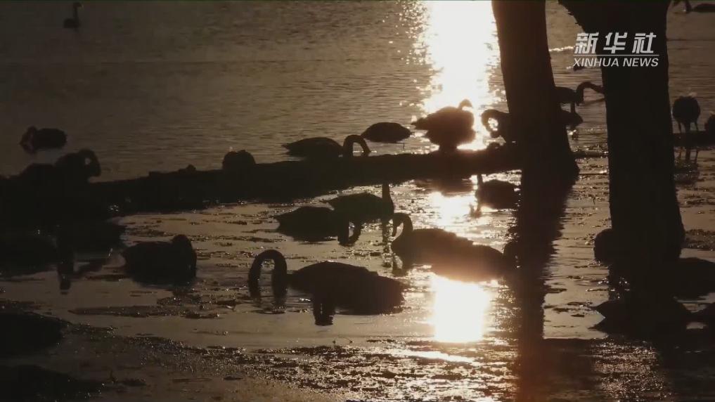 隆冬时节,山西省平陆县大天鹅生态湿地公园里的湖面出现大面积结冰。在此栖息的天鹅或振翅翱翔,或在冰面上蹒跚漫步,当巡护员的哨声响起,这些人间精灵更是飞奔而来,整个湖面犹如奏响人与自然和谐的生态之曲,为冬日里的黄土高原增添了一份灵动之美。(新华社记者原勋)