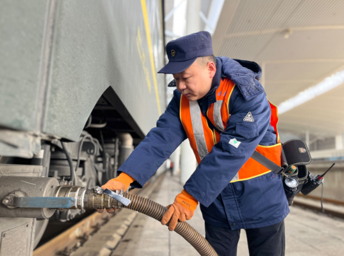 列车卫生间里的污物最后都去哪儿了?很多乘客有这样的疑问。吸污作业组就是负责给列车“清肠”的人。他们把连接着站内吸污单元的可延伸吸污管,与列车污物箱相连接,通过管道压力作用,把集便器内的污物排入车站内的吸污单元,以此清空列车污物箱。(新华社记者王菲菲、王怡静)