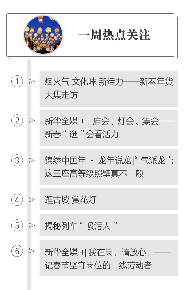 “逛”是中国人过春节常见的姿势,它折射出人们忙碌一年后欢度佳节的舒心。人们“逛”出家人齐聚的团圆与幸福,更“逛”出社会蓬勃的活力。(新华社记者李紫薇、杨淑君、陈爱平、周蕊、段续、马晓成)