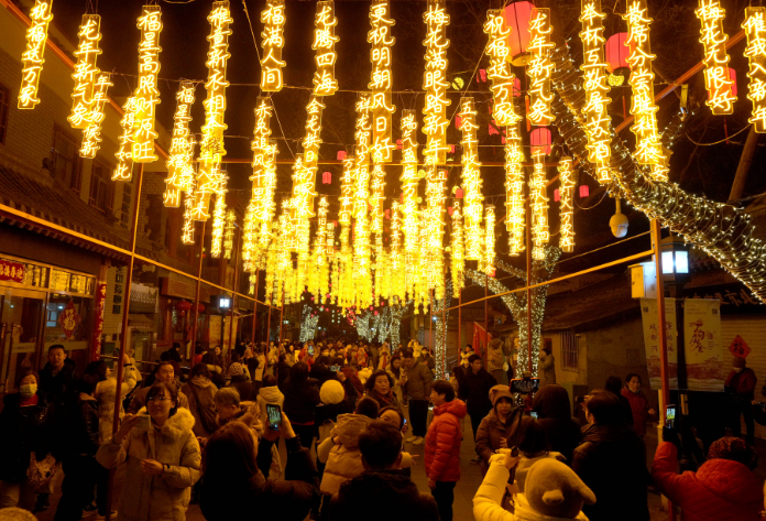 春节期间,在山西省太原市晋源区太原古县城举办的“锦绣太原中国年·凤舞龙城花灯会”上,各类花灯流光溢彩、璀璨夺目,吸引众多游人前来观赏。(新华社记者詹彦)