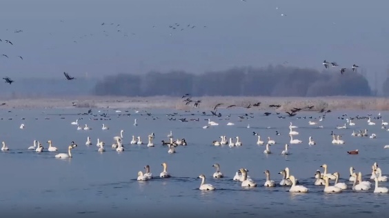 连日来,数以万计的候鸟飞临山西朔州桑干河湿地。数量庞大的候鸟在水面上形成“鸟浪”生态奇观,成为湿地一道亮丽的风景线,当地也迎来了一年中最佳的观鸟期。(新华社记者徐伟)