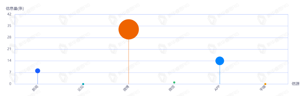 截至目前,该文章在互联网上传播总量184篇。其中7月19日是传播的高峰期,共传播165篇文章。各信源的信息发布情况中,新闻信息占比最大,其次是微博和APP,占比分别为38.04%、23.91%、19.02%。(数据来源:新华睿思数据云图分析平台)