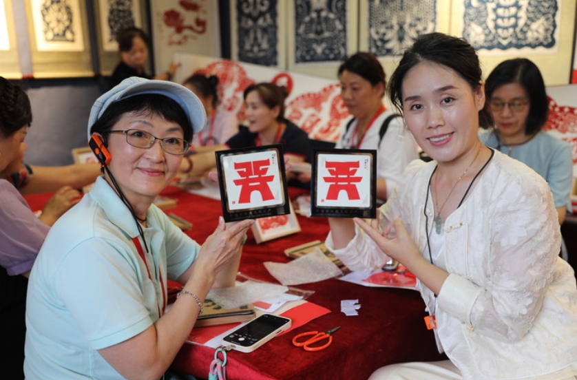 台湾与山西相距超过1700公里,但是来到山西太原的台湾女企业家们,却觉得好似回到了家乡。日前,近30名两岸女企业家在山西参加非遗项目体验特色交流活动。这是2024年“台商台青走晋来”系列活动之一。(新华社记者马晓洁、姜淏然)