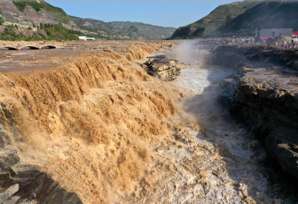 寒露过后,秋意渐浓。连日来,受上游水库调节放水影响,位于山西吉县和陕西宜川县交界的黄河壶口瀑布水量丰沛,形成绵延百米的壮美瀑布群,吸引众多游客前来观赏。(新华社记者王飞航)