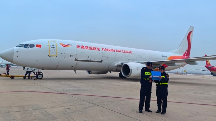 21日8时,在太原海关所属太原机场海关现场监管下,一架满载服装、零配件等中国商品的货运飞机,从太原武宿国际机场起飞,前往哈萨克斯坦阿拉木图。(新华社记者王皓)