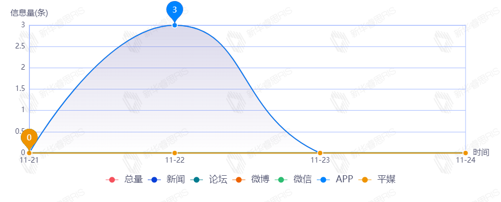 截至目前,该文章在互联网上传播总量3篇。其中11月22日是传播的高峰期,共传播3篇文章。各信源的信息发布情况中,APP占比达到100%。(数据来源:新华睿思数据云图分析平台)