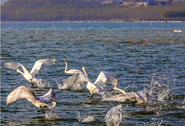 冬月里,三晋大地水碧天蓝,群鸟翱翔,生机勃勃。越来越多的鸟类在此繁衍栖息,诠释着活力无限的生态之美。(新华社记者詹彦)
