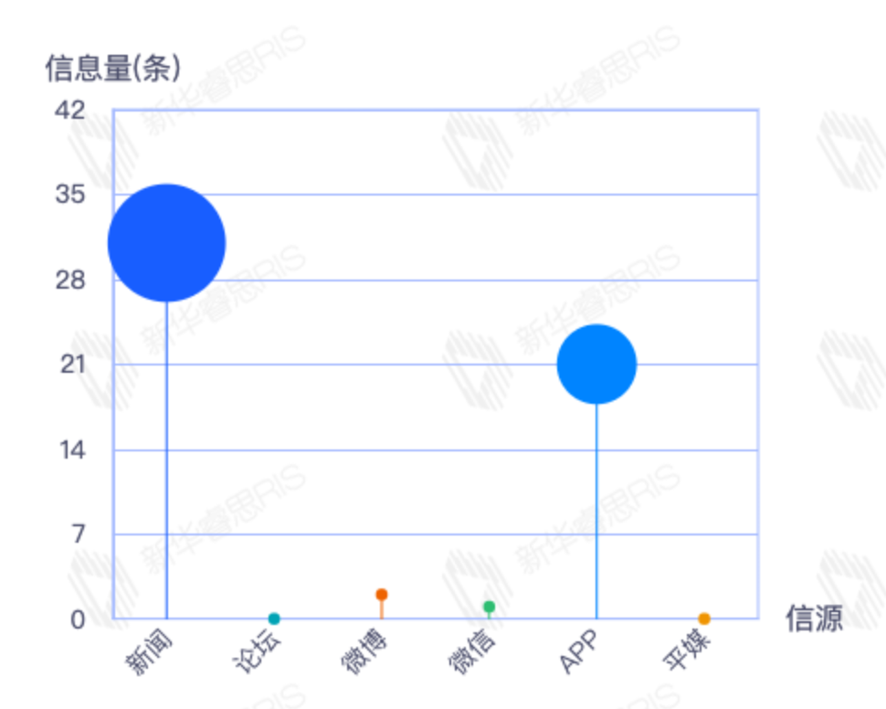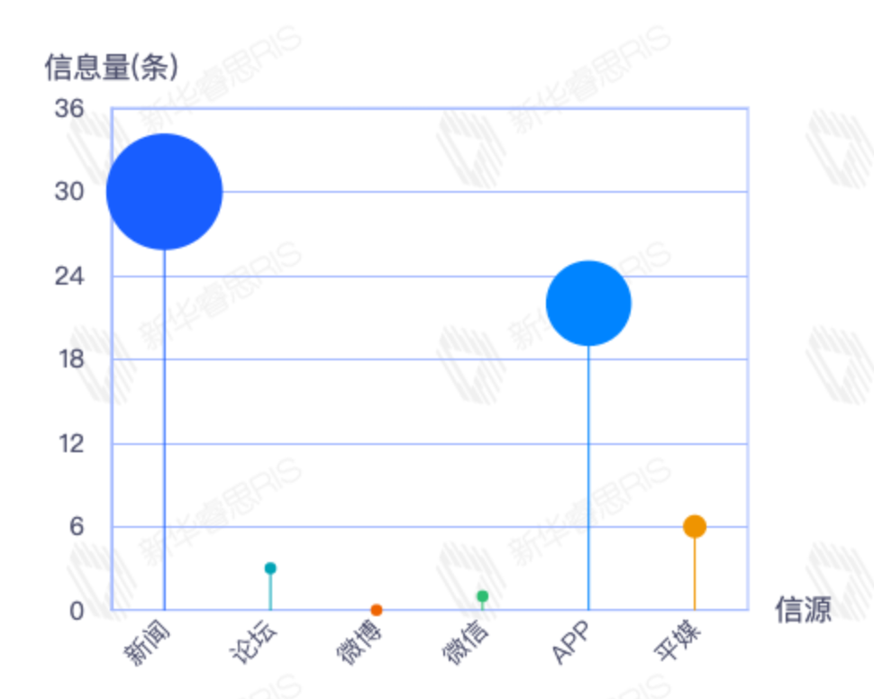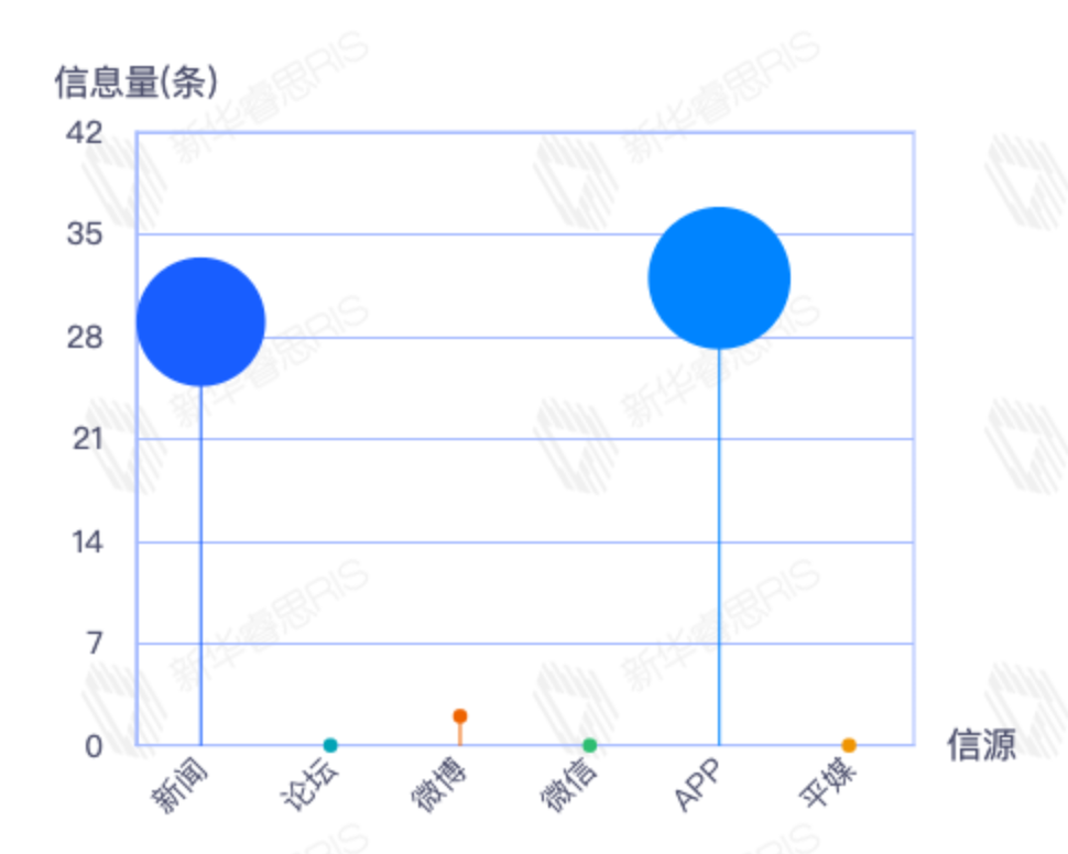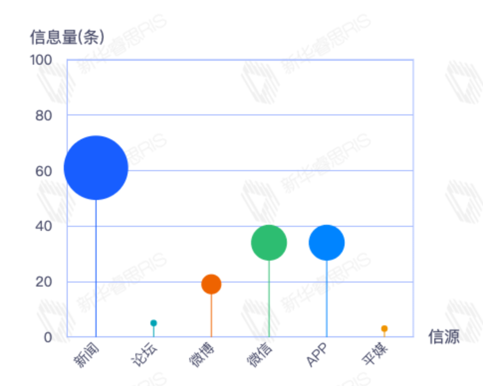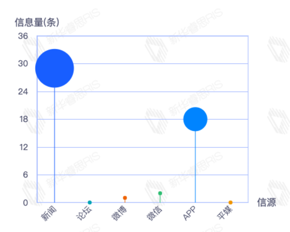 截至目前,该文章在互联网上传播总量54篇。其中12月21日是传播的高峰期,共传播54篇文章。各信源的信息发布情况中,新闻信息占比最大,其次是APP和微信,信息量分别为28、21、2,占比分别为54.90%、41.18%、3.92%。(数据来源:新华睿思数据云图分析平台)