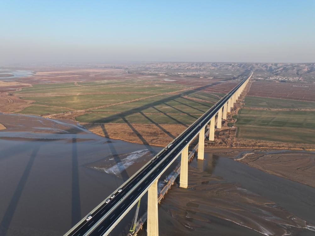 12月16日,由中国铁建投资集团投资、中国铁建大桥局承建的临猗黄河大桥正式建成通车,标志着G3511菏宝高速公路全线通车运营,也标志着陕西境内已经建成4年的合(阳)铜(川)高速全线通车运营。(新华社记者王皓)
