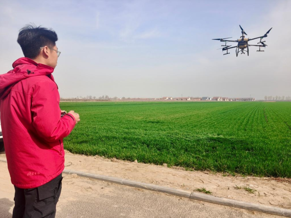 又到繁忙的春耕时节,黄河东岸的晋南地区,绿油油的冬小麦笔直茂密,如同一块块巨大的地毯。66岁的丁成敏站在自家地头,看着儿子驾驶大型农机和孙子熟练操作植保无人机,一幕幕春耕往事涌上心头。(记者吕梦琦、王皓)