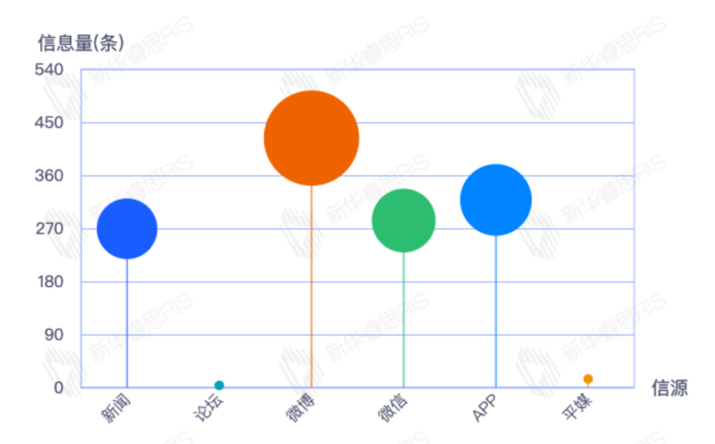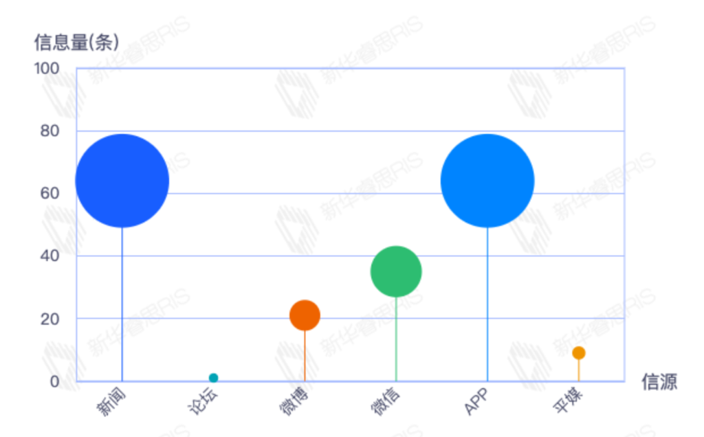 截至目前,该文章在互联网上传播总量54篇。其中4月11日是传播的高峰期,共传播45篇文章。各信源的信息发布情况中,新闻信息占比最大,其次是APP和平媒,信息量分别为25、23、2,占比分别为46.30%、42.59%、3.70%。(数据来源:新华睿思数据云图分析平台)