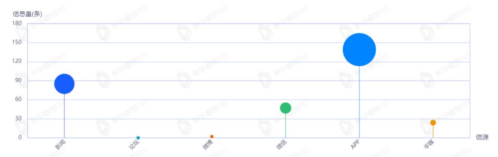 截至目前,该文章在互联网上传播总量共160篇。其中,5月4日是传播的高峰期,共传播51篇文章。各信源的信息发布情况中,APP信息占比最大,其次是新闻和微信,占比分别为40.00%、38.13%、18.13%。(数据来源:新华睿思·数媒智慧分析平台)