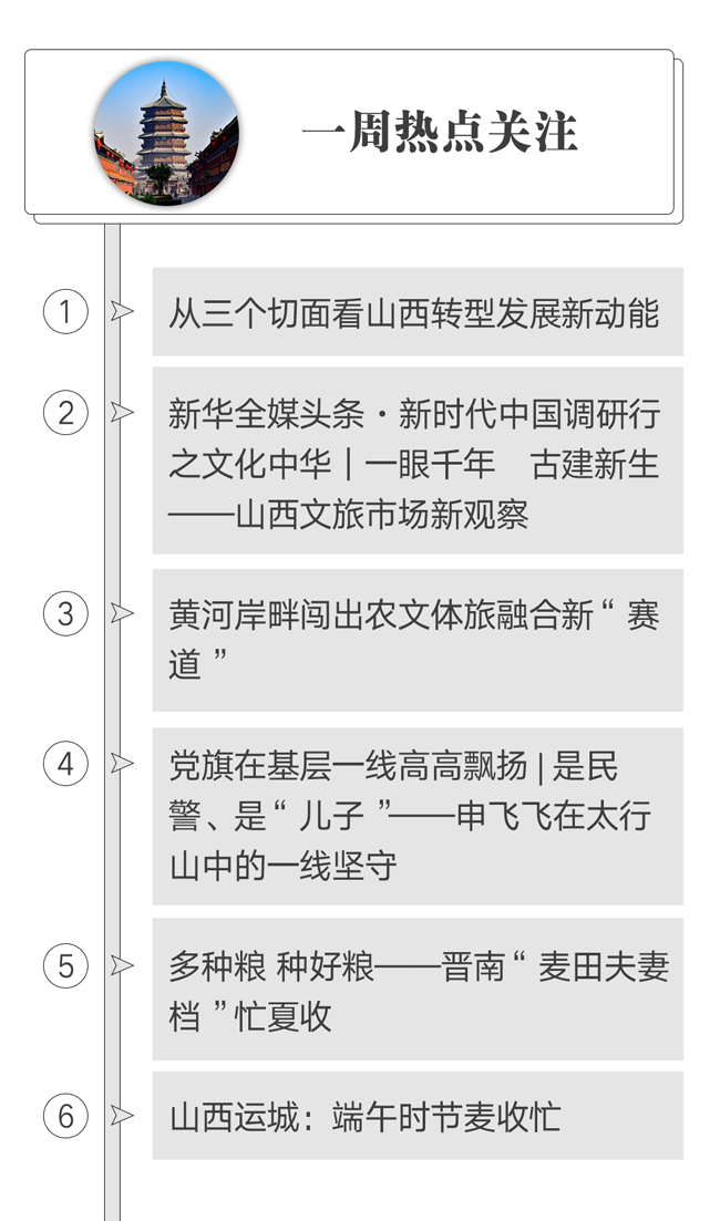 在项目建设、文旅消费和企业科创一线,看转型发展新动能;在古建筑旁,看悠久文化和时代流量的“双向奔赴”;在田间地头,看麦浪翻滚、夏粮丰收;在太行山村,看民警申飞飞的坚守……端午时节,三晋大地万物并秀,新华社记者深入基层一线,走进田间地头,触摸黄土地上的转型脉动,感受蓬勃向上的活力。