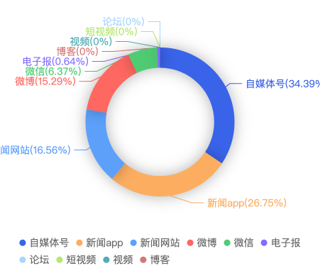 截至目前,该文章在互联网上传播总量共157篇。其中,6月11日是传播的高峰期,共传播105篇文章。各信源的信息发布情况中,自媒体号占比最大,其次是APP和新闻网站,占比分别为34.39%、26.75%、16.56%。(数据来源:新华睿思·数媒智慧分析平台)