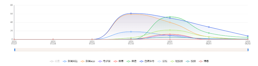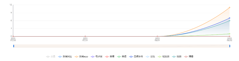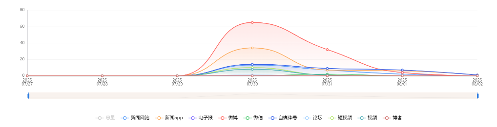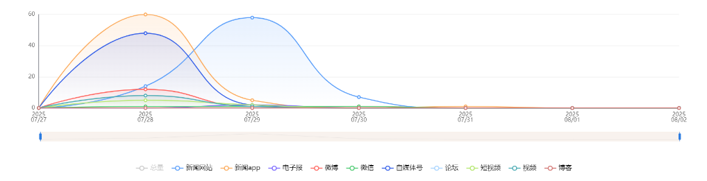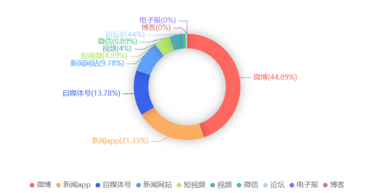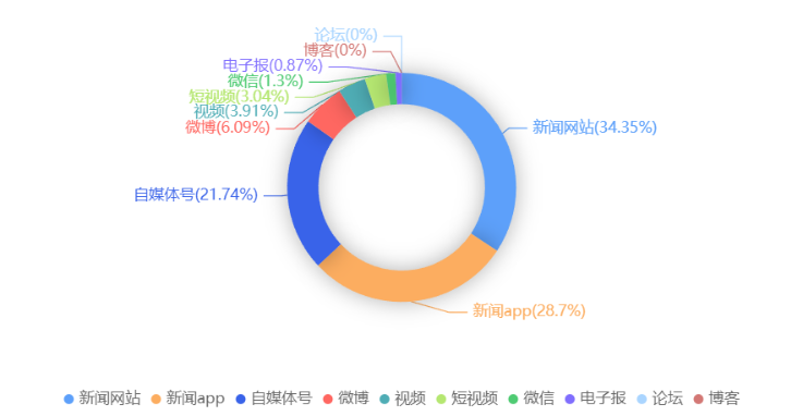 截至目前,该文章在互联网上传播总量共225篇。各信源的信息发布情况中,微博占比最大,其次是新闻APP。(数据来源:新华睿思·数媒智慧分析平台)