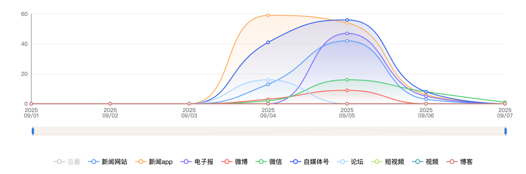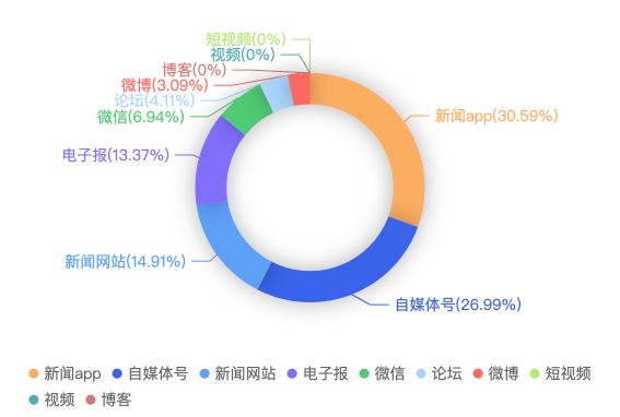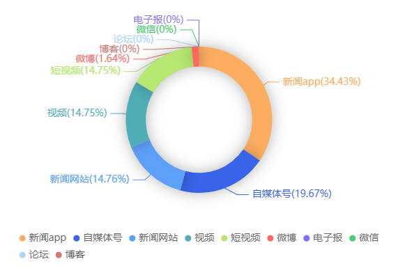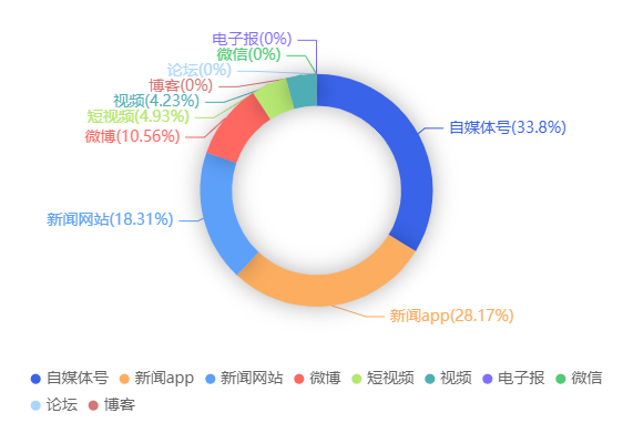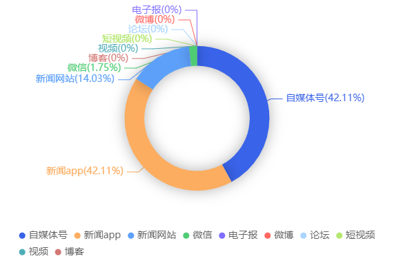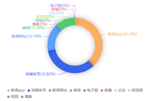 截至目前,该文章在互联网上传播总量共68篇。各信源的信息发布情况中,新闻APP占比最高,其次是自媒体号。(数据来源:新华睿思数据云图分析平台)