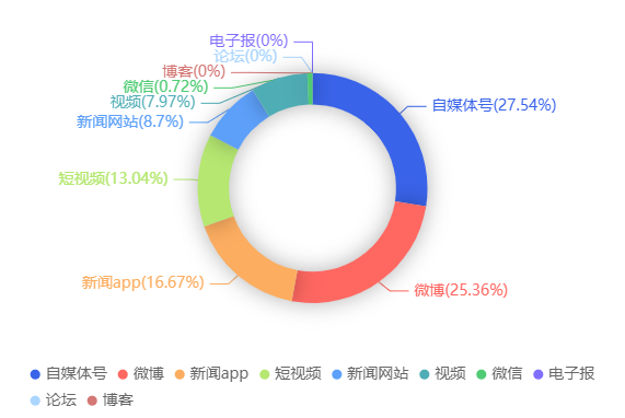 截至目前,该文章在互联网上传播总量共138篇。各信源的信息发布情况中,自媒体号占比最高,其次是微博。(数据来源:新华睿思数据云图分析平台)