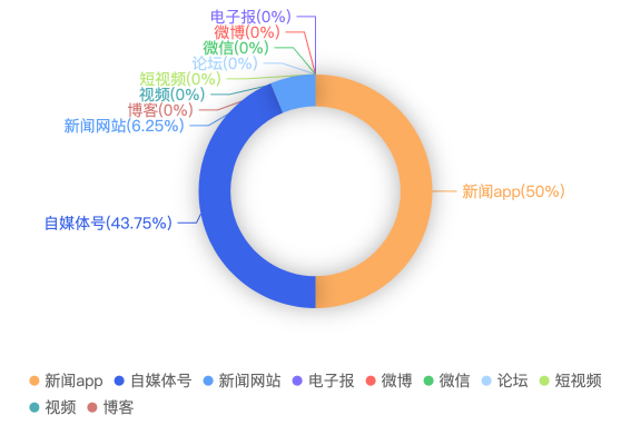 截至目前,该文章在互联网上传播总量共32篇。各信源的信息发布情况中,新闻APP占比最高,其次是自媒体号。(数据来源:新华睿思数据云图分析平台)