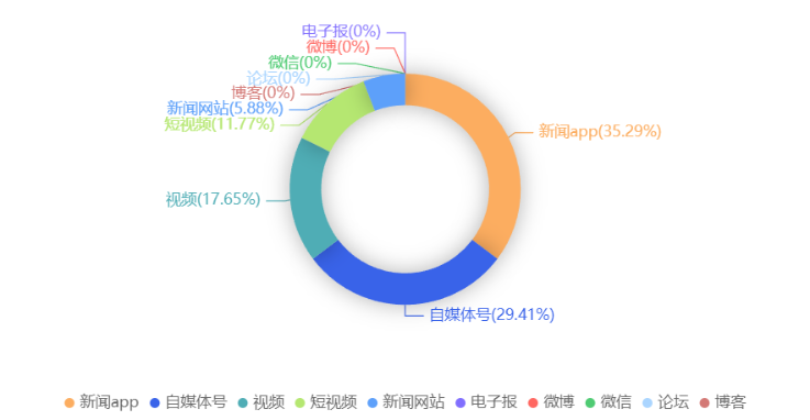 截至目前,该文章在互联网上传播总量共34篇。各信源的信息发布情况中,新闻APP占比最大,其次是自媒体号。(数据来源:新华睿思·数媒智慧分析平台)
