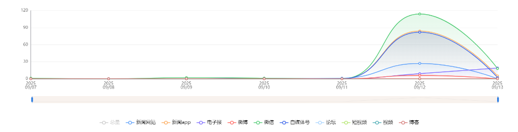 截至目前,该文章在互联网上传播总量共371篇。各信源的信息发布情况中,微信占比最大,其次是新闻APP。(数据来源:新华睿思·数媒智慧分析平台)