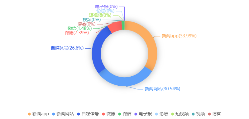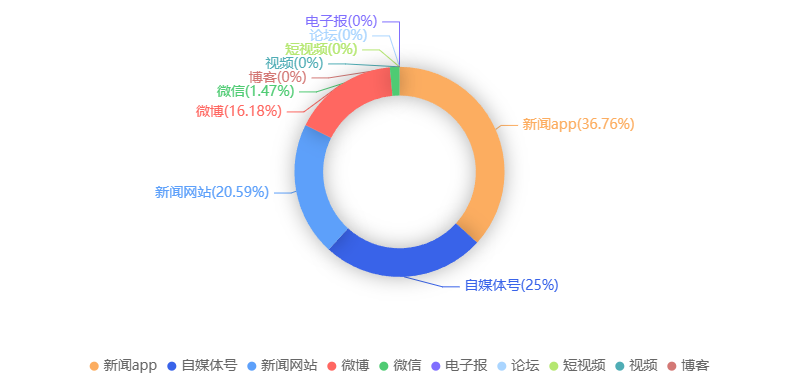 截至目前,该文章在互联网上传播总量共68篇。各信源的信息发布情况中,新闻APP占比最大,其次是自媒体号。(数据来源:新华睿思·数媒智慧分析平台)