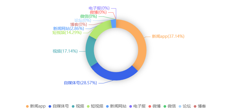 截至目前,该文章在互联网上传播总量共35篇。各信源的信息发布情况中,新闻APP占比最大,其次是自媒体号。(数据来源:新华睿思·数媒智慧分析平台)