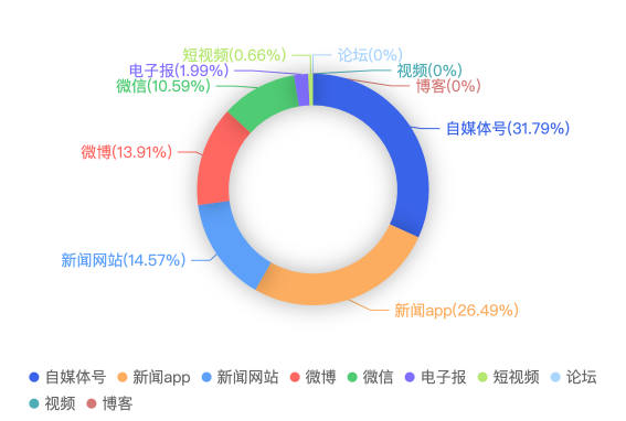 截至目前,该文章在互联网上传播总量共59篇。各信源的信息发布情况中,新闻APP占比最大,其次是自媒体号。(数据来源:新华睿思·数媒智慧分析平台)
