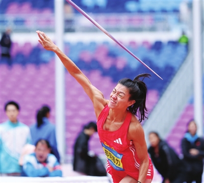 11月19日,女子七项全能比赛中,我省运动员郑妮娜力获得金牌。图为郑妮娜力进行标枪比赛。 牛利敏 摄