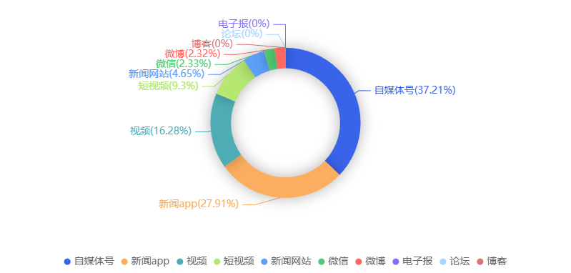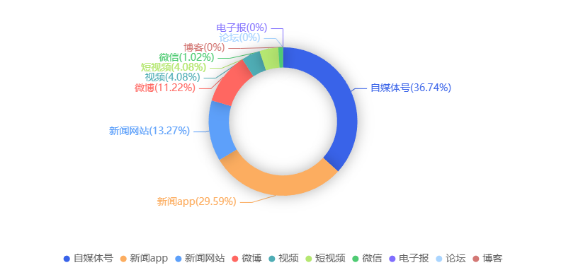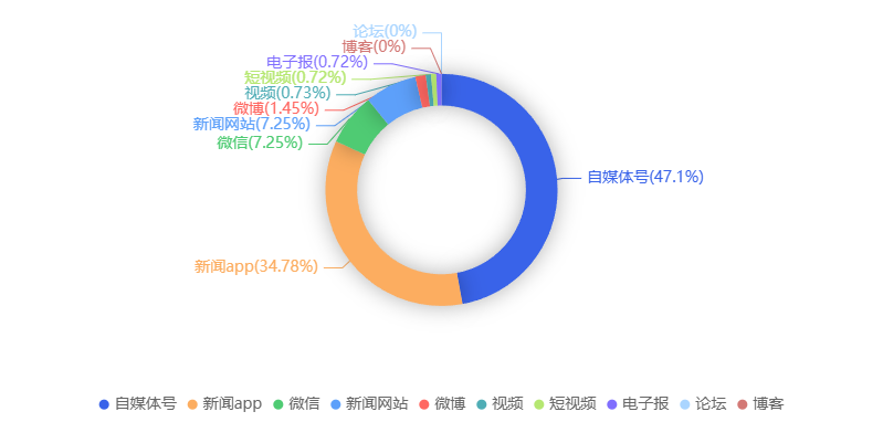 截至目前,该文章在互联网上传播总量共84篇。各信源的信息发布情况中,自媒体号占比最大,其次是新闻APP。(数据来源:新华睿思·数媒智慧分析平台)