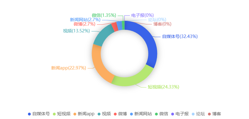 截至目前,该文章在互联网上传播总量共74篇。各信源的信息发布情况中,自媒体号占比最大,其次是短视频。(数据来源:新华睿思·数媒智慧分析平台)