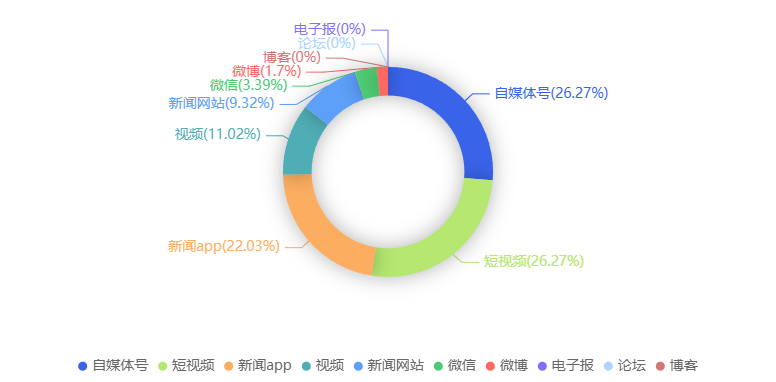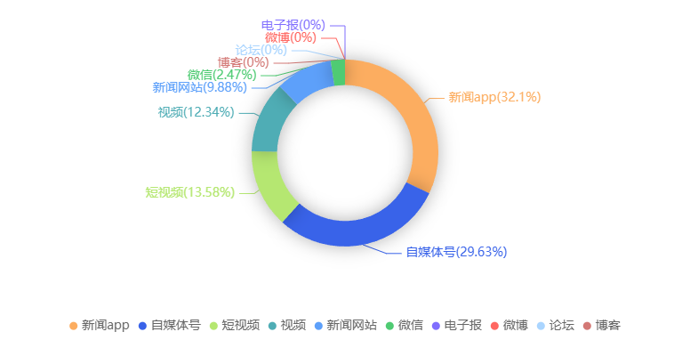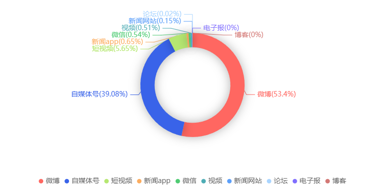 截至目前,该文章在互联网上传播总量共9236篇。各信源的信息发布情况中,微博占比最高,其次是自媒体号。(数据来源:新华睿思数据云图分析平台)