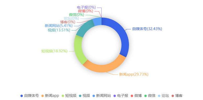 截至目前,该文章在互联网上传播总量共37篇。各信源的信息发布情况中,自媒体号占比最高,其次是新闻App。(数据来源:新华睿思数据云图分析平台)
