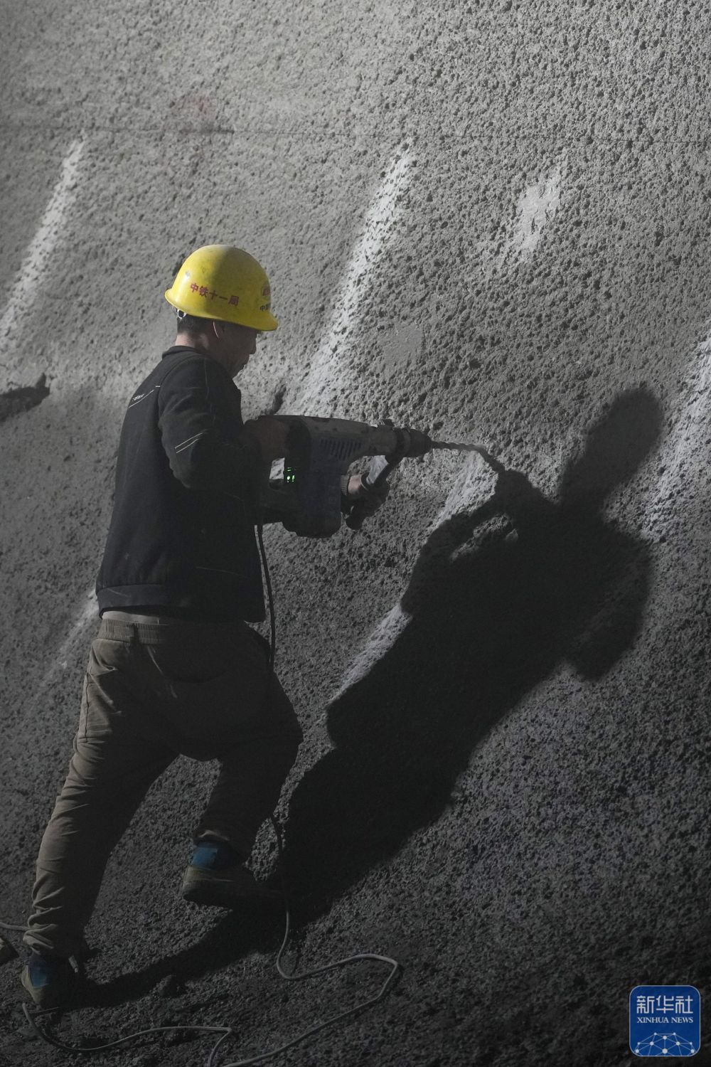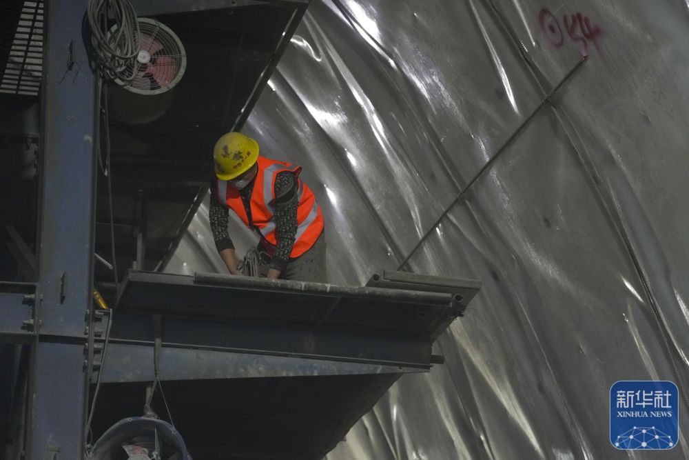 1月12日,中铁十一局集团有限公司的工作人员在雄忻高铁北太行山隧道内施工作业。