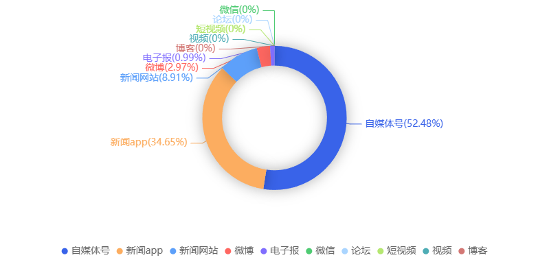 截至目前,该文章在互联网上传播总量共58篇。各信源的信息发布情况中,新闻APP占比最大,其次是自媒体号。(数据来源:新华睿思·数媒智慧分析平台)