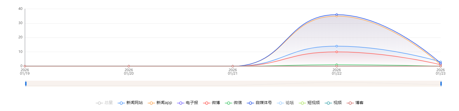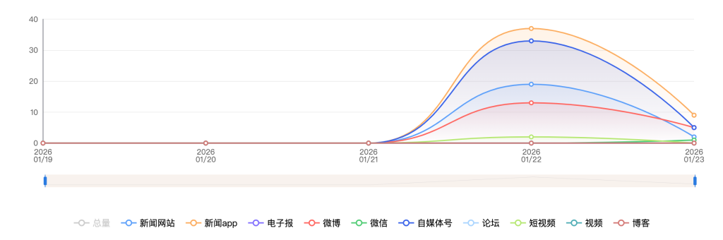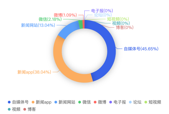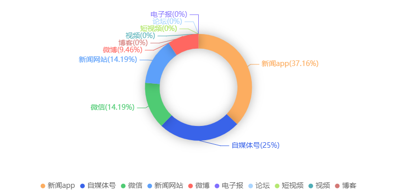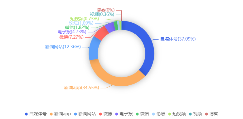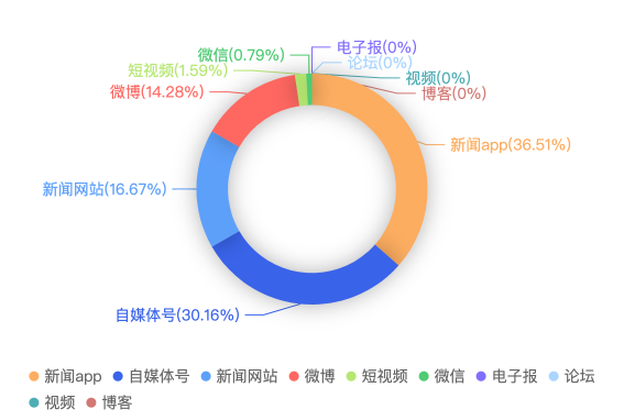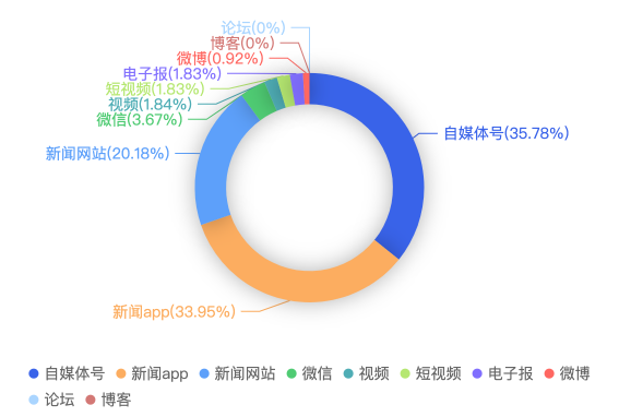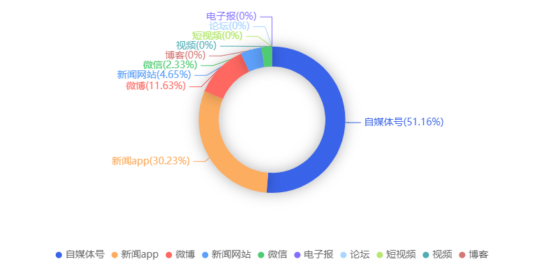 截至目前,该文章在互联网上传播总量共43篇。各信源的信息发布情况中,自媒体号占比最大,其次是新闻APP。(数据来源:新华睿思·数媒智慧分析平台)