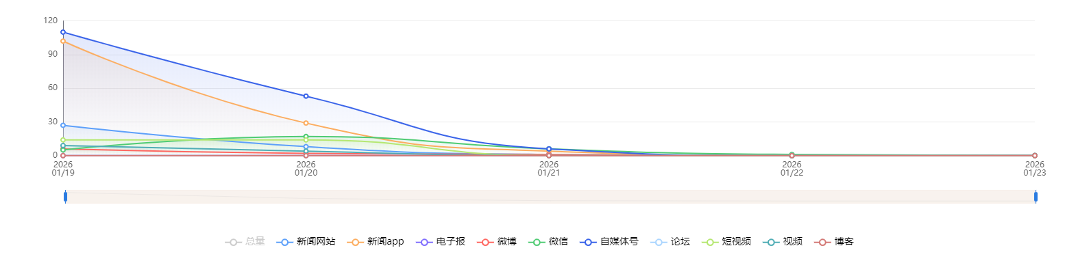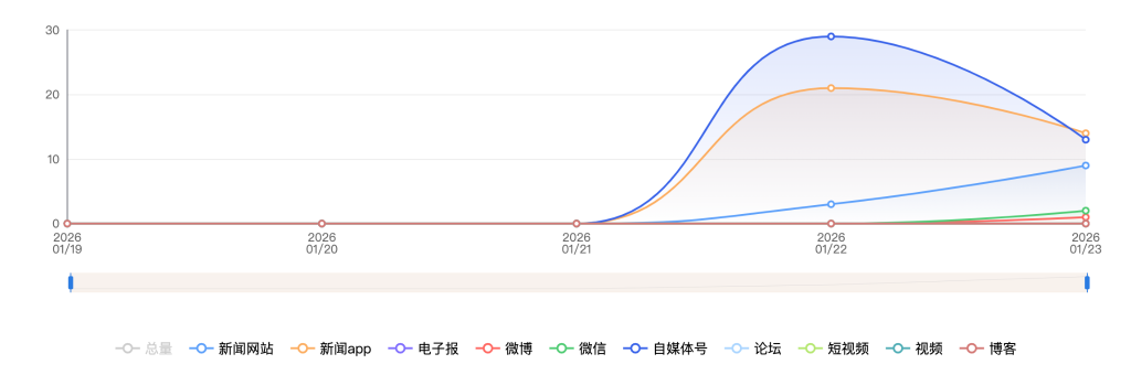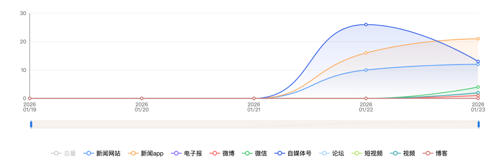 截至目前,该文章在互联网上传播总量共100篇。各信源的信息发布情况中,微信占比最大,其次是自媒体号。(数据来源:新华睿思·数媒智慧分析平台)
