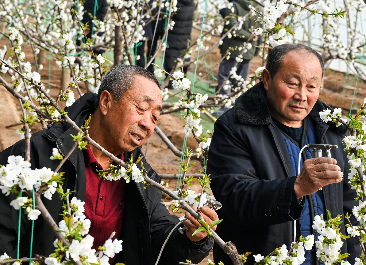隆冬时节,大同市德昕恒泰农业有限责任公司的全自动生态农业温室大棚内,樱桃花次第开放,清新淡雅。工作人员忙着浇水、剪枝,打理大棚。