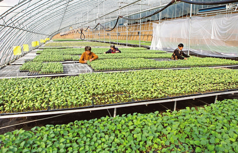 1月28日,襄汾县古城镇北街村一处蔬菜育苗基地内,村民正在培育蔬菜幼苗。目前,该基地蔬菜育苗面积1万平方米,年产苗种600万株,带动周边千余农户发展蔬菜特色种植。(李现俊摄)