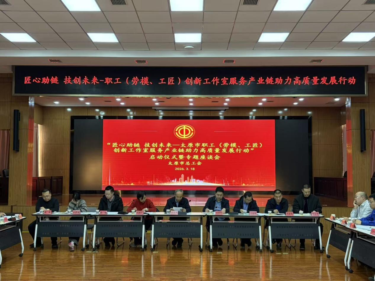 3月18日,太原市总工会召开太原市职工(劳模、工匠)创新工作室服务产业链助力高质量发展行动启动仪式暨专题座谈会。